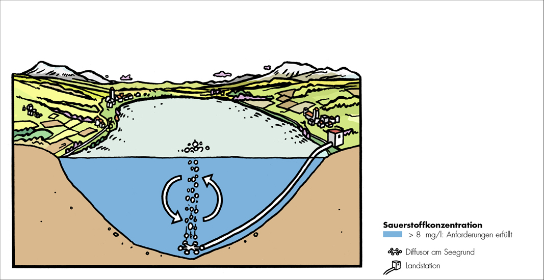 Beim Sempacher- und beim Baldeggersee unterstützt der Kanton Luzern die Bemühungen der Landwirtschaft zur Reduktion der Phosphorbelastung. Um die Anforderungen bezüglich Sauerstoff im Tiefenwasser zu erreichen (4 mg/l), muss der Phosphoreintrag aus dem Einzugsgebiet weiter reduziert werden. Die natürlichen Sauerstoffverhältnisse im Tiefenwasser der beiden Seen sind jedoch noch nicht wiederhergestellt, auch die damit verbundene Naturverlaichung der Felchen konnte noch nicht beobachtet werden.