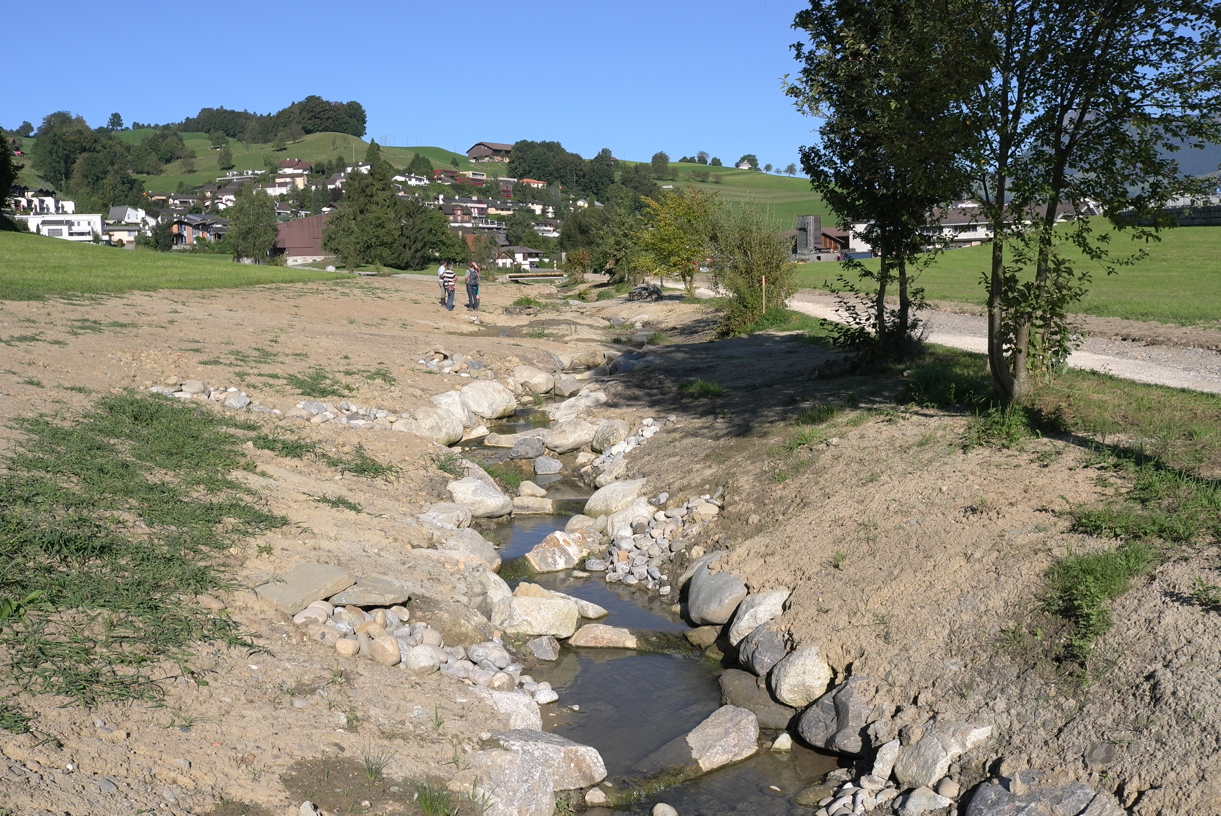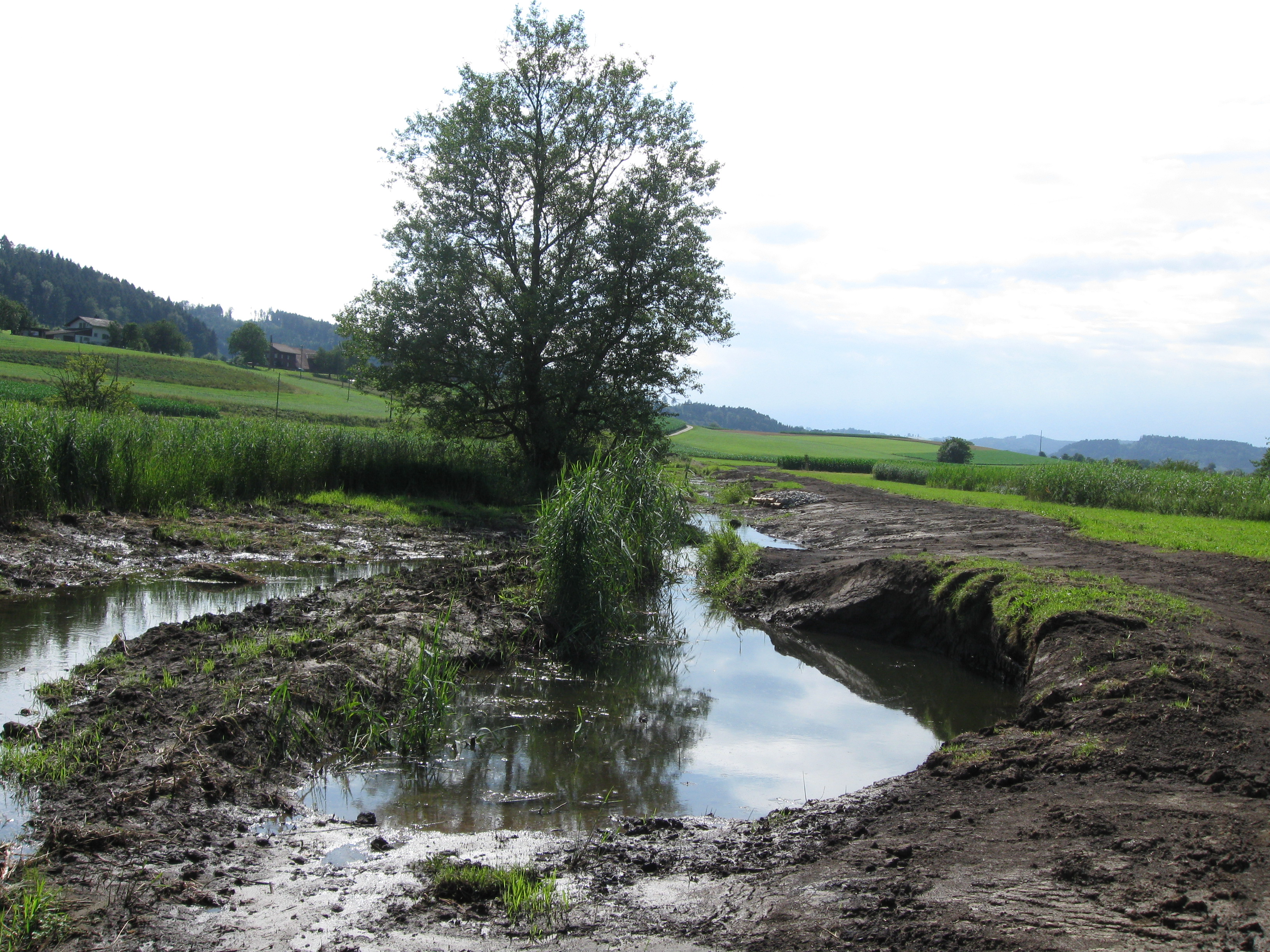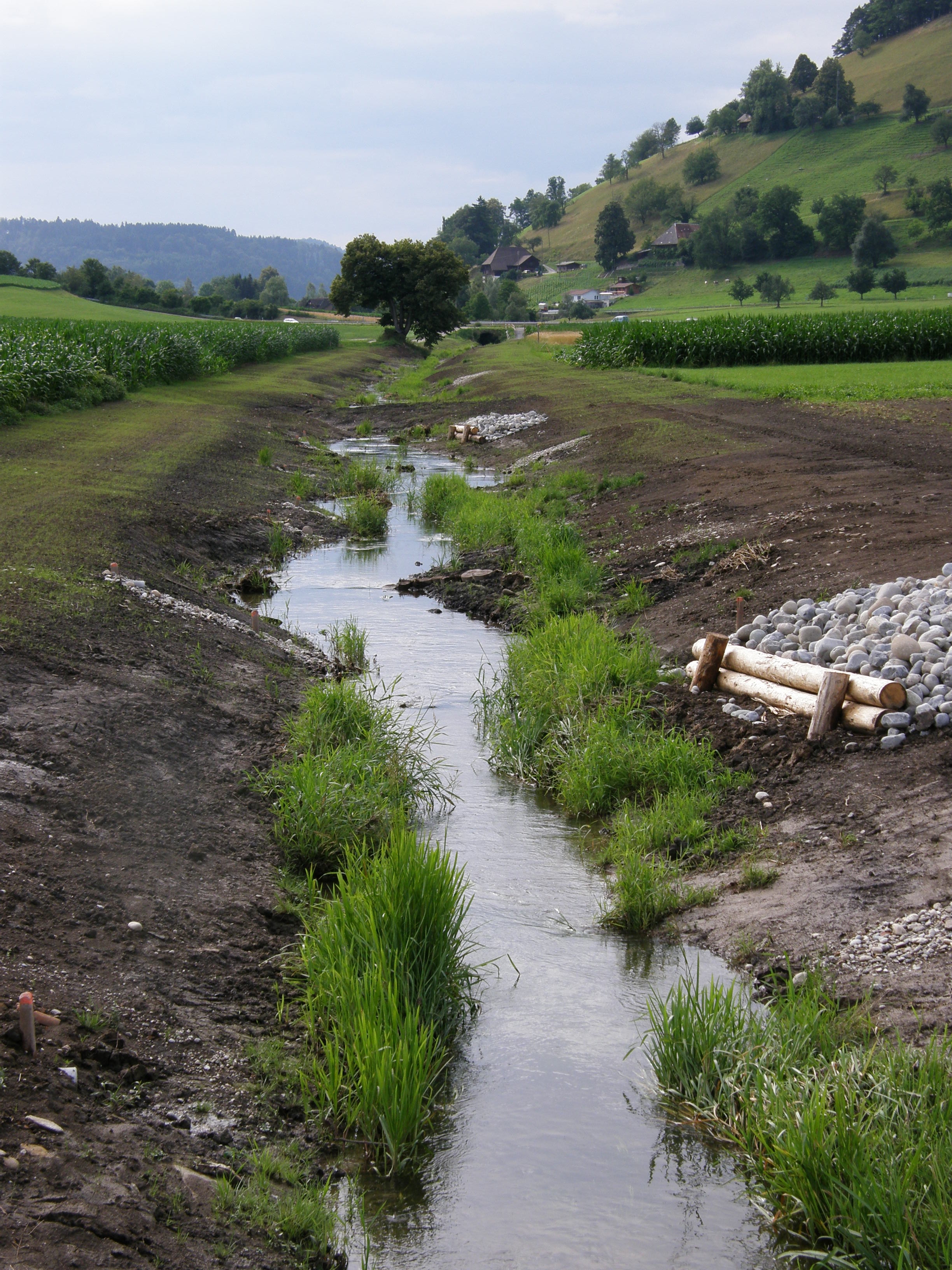 Das Gebiet Dönihus (Gemeinde Buttisholz) liegt genau zwischen Grosswangen und Nottwil. Vor der Revitalisierung 2014 war der Bach eingedolt.