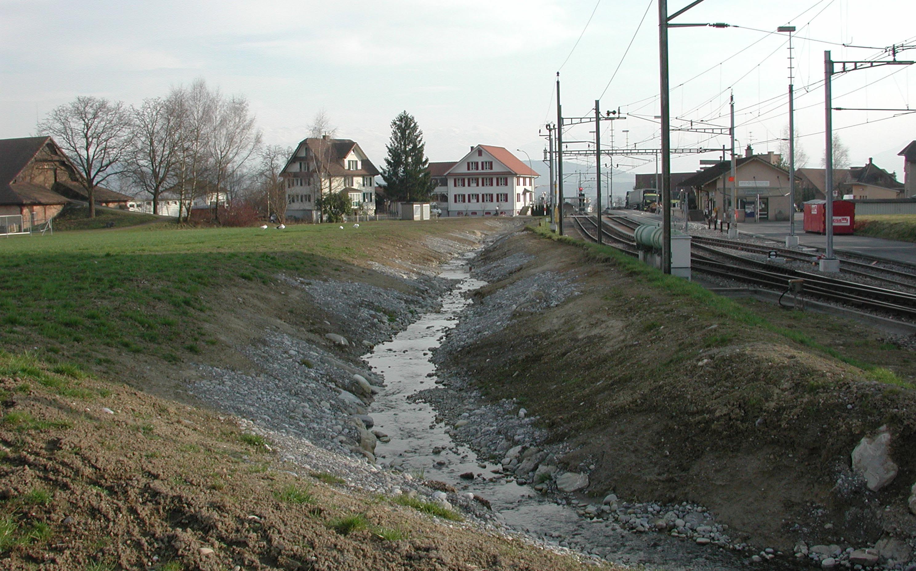 Der Rickenbach quert das Dorf Rickenbach und wurde im Siedlungsgebiet 2008 so weit wie möglich ausgedolt.